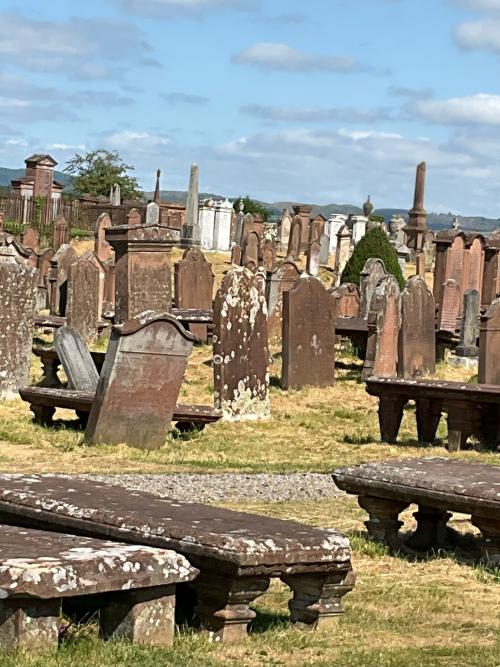 Explore Kirkcudbright's historic kirkyard with guides from Kirkcudbright History Society. In a beautiful setting above the town, and the site of the original kirk which gave the town its name, the kirkyard and its memorials tell many fascinating and surprising stories about the town and its past inhabitants.